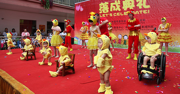 3歲的豐豐患身體多部位發(fā)育不完全,尤其下肢比正常同齡人短小很多,剛來衡陽春天服務中心時根本無法正常行走,隨著康復訓練,現(xiàn)在他已經(jīng)能夠使用助行器,慢慢自主行走,今天還在舞臺上為我們表演了舞蹈。青青剛來服務中心時,性格十分暴躁,動不動就摔東西甚至打人,現(xiàn)在的青青已經(jīng)口齒比較清晰,能夠與人交流,她還特別喜歡做手工制作。