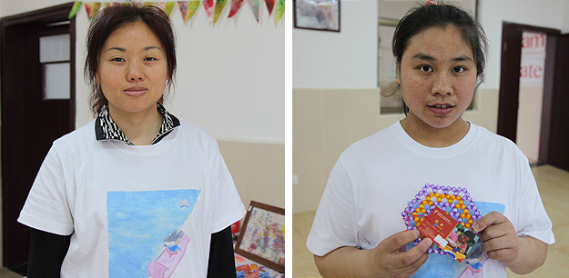 在三樓的手工藝品展覽室,綠之韻的志愿者們進入到了屬于孩子們自己的奇妙世界:一幅幅想象力豐富的的彩色畫作、各種各樣精致的手工作品。手工室張永紅老師告訴志愿者們,她來服務中心已經(jīng)9年,從一開始的護理員,到自學手工給孩子教學,照料好這些孩子需要付出超出常人的耐心和勇氣。問及為何能夠堅持這么多年,她說,就像愛自己的孩子一樣,愛著愛著就成了習慣。