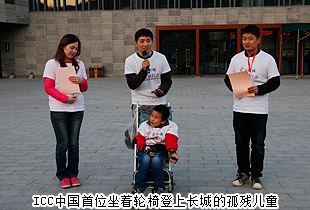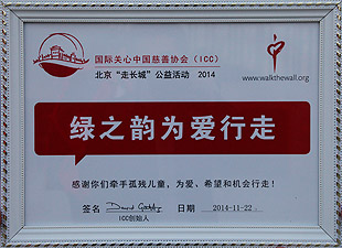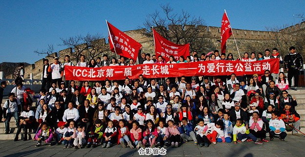 “走長城”活動是國際關心中國慈善協(xié)會(簡稱ICC)創(chuàng)始人英國義工高永恩先生從2007年發(fā)起的,每年的金秋在加拿大、澳大利亞、英國、美國、新加坡、法國、愛爾蘭、荷蘭、中國香港、長沙、衡陽、三門峽的愛心義工們攜手為孤殘兒童行走。ICC在國外組織的為愛行走活動主要是為中國的孤殘兒童來籌集善款,透過這個活動籌集到的善款挽救了許多孤殘兒童的生命,幫助孩子們有了新的家,有了愛、希望和機會。