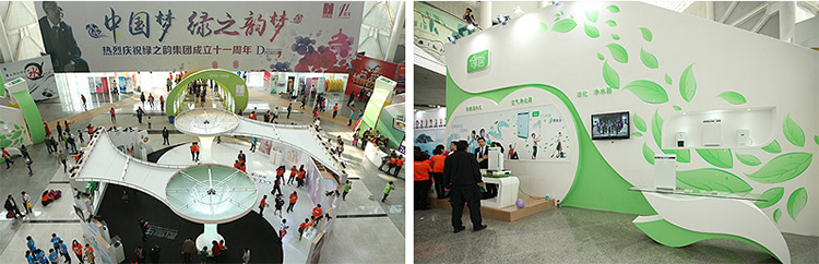 進(jìn)入湖南國(guó)際會(huì)展中心嘉年華活動(dòng)入口處,印入眼簾的氣勢(shì)恢宏的企業(yè)文化歷程立體展板。與時(shí)代同行,與祖國(guó)同行,該展示區(qū)域從水的精神、家文化、企業(yè)經(jīng)營(yíng)宗旨、產(chǎn)品理念、核心價(jià)值觀、歷史使命、愿景規(guī)劃等多個(gè)方面直觀、形象和生動(dòng)地細(xì)數(shù)了綠之韻十一年文化傳承、輝煌發(fā)展之路。