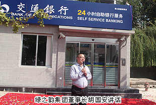 隨后,交通銀行領(lǐng)導(dǎo)向胡國安董事長(zhǎng)授“戰(zhàn)略合作”的牌匾。胡董在講話中強(qiáng)調(diào),本次的合作是一件利企利民、合作雙贏的好事。隨著綠之韻發(fā)展壯大和工業(yè)園經(jīng)濟(jì)發(fā)展的加速,綠之韻員工、經(jīng)銷商、工業(yè)園周邊群眾的存取款、匯款等基本業(yè)務(wù)的需求量較大,但營業(yè)網(wǎng)點(diǎn)卻寥寥無幾,大家需要坐車到城里才能完成業(yè)務(wù)辦理,費(fèi)時(shí)費(fèi)力。這次綠之韻集團(tuán)總部交通銀行自助銀行的營業(yè),將極大方便綠之韻人及周邊群眾的存取款業(yè)務(wù)辦理,衷心感謝交行領(lǐng)導(dǎo)的關(guān)心和支持。