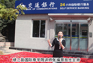 交通銀行瀏陽支行副行長(zhǎng)何曼曼在揭幕儀式上發(fā)表致辭。她對(duì)綠之韻成立11周年表示熱烈祝賀,并對(duì)此次合作寄予厚望。她表示:多年來,交通銀行和綠之韻集團(tuán)一直保持著非常好的合作關(guān)系。今年,為了給廣大經(jīng)銷商提供更人性化的服務(wù),綠之韻向我行申請(qǐng)?jiān)诩瘓F(tuán)公司設(shè)立自助銀行,這是全省極為罕見的專門為一個(gè)公司而建設(shè)自助銀行,在這個(gè)過程中,得到了交通銀行湖南省分行的高度重視,得到了綠之韻公司的大力支持。今天,交通銀行綠之韻自助銀行正式開業(yè)了,這意味著我們雙方的合作將更加緊密。“經(jīng)濟(jì)活,金融活”。今天工業(yè)園的發(fā)展日新月異,成為了瀏陽經(jīng)濟(jì)增長(zhǎng)的主力軍,交通銀行瀏陽支行將繼續(xù)做好網(wǎng)點(diǎn)布局工作,為瀏陽企業(yè)和市民提供更加優(yōu)質(zhì)、更專業(yè)的服務(wù)。