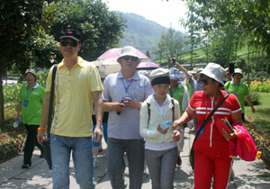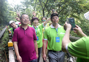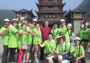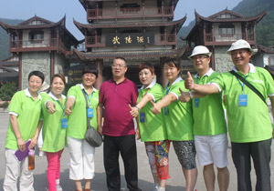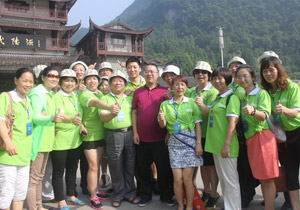 第二天,最讓伙伴們感動(dòng)的是:伙伴們正準(zhǔn)備挺進(jìn)武陵源景區(qū)大門時(shí),突然見到尊敬的胡國(guó)安董事長(zhǎng)頂著炎炎烈日、大汗淋漓、在百忙之中走到我們中間,與所有伙伴一起游覽十里畫廊,并一一合影留念。胡董事長(zhǎng)說:“爬山好比我們綠之韻事業(yè),開始會(huì)有很多的憧憬、愿望、懷疑、憂慮,當(dāng)我們一步一個(gè)腳印前進(jìn)時(shí),發(fā)現(xiàn)在前行的過程中有很多美麗的風(fēng)景、可愛的伙伴,但是,也會(huì)遇到恐懼、坎坷。在這過程中,有鼓勵(lì)你的人、也有打擊的人,關(guān)鍵是自己的毅力與耐力是否能戰(zhàn)勝自己。不管怎樣,我愿意陪伴大家一起走向成功的頂峰?!焙麻L(zhǎng)真是太神奇了,他之前的一番話,伙伴們?cè)谂郎竭^程中幾乎全部遇到了。當(dāng)伙伴們爬過一個(gè)小山丘時(shí),有人開心的不得了,尤其是站在山腰往下看到美麗的山與大樹時(shí)更是欣喜若狂。大家鼓足勇氣,一鼓作氣爬到了頂峰,每個(gè)人的臉上都露出了勝利與幸福的笑容!