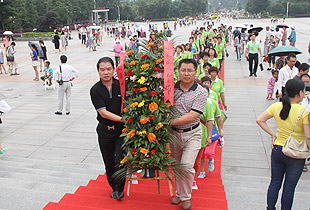 第二站是毛澤東銅像廣場。毛澤東銅像在廣場的正中間巍然矗立,身著中山裝,面朝東南方,胸前掛著“主席”證,手里握著一卷文稿,面帶微微笑意,目光炯炯有神,正視這正前方。銅像的大理石基座正面,鐫刻著“毛澤東同志”五個貼金大字。廣場上人山人海,來自祖國各地、五湖四海的人們不約而同匯聚在偉人腳下。各色花籃,虔誠鞠躬,深情仰望,每個人都自發(fā)自覺的用自己的方式懷念著這位偉大的無產(chǎn)階級革命家,壯志成城的政治家,永垂不朽的理論家。 全球營銷中心(中國區(qū))常務(wù)副總經(jīng)理諶獻軍、國際商學(xué)院執(zhí)行院長孫心琥、帶領(lǐng)著營銷精英們整齊有序排好隊列,懷著無比敬仰與懷念,給毛澤東銅像敬獻了美麗的花籃,并恭敬地給毛澤東銅像三鞠躬,然后緩緩地從左往右圍繞毛澤東銅像走了一周,以表達我們對一代偉人的深深摯情。