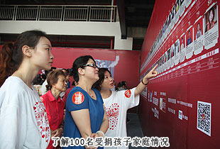 九點,主辦方宣布活動開始。踴躍的綠之韻愛心志愿者們雖著急捐款,卻井然有序。他們在門口排成長隊,依次進入。而坐在座位上,期盼著好心人的孩子們沿著活動大廳周邊坐著,等待著捐款。每位孩子旁邊各有一位工作人員協(xié)助接受捐贈并開具票據(jù)。在孩子們背后的墻上,滿滿當當?shù)膶懼麄兤D苦的經(jīng)歷。有父母早逝,離異,從小與年邁的爺爺奶奶相依為命的孩子;也有家人重病,為治病負債累累,居無定所的孩子;還有家中毫無經(jīng)濟支撐,又逢天災,消瘦如骨的孩子;他們每個人都十分拮據(jù),溫飽都解決不了,生活更難以為繼,但是面對困難,他們臉上所透出的是不屈不撓。雖然在夾縫中生存著,卻大多能保持向上的心,從小便養(yǎng)成了勤奮、懂事、好學的好習慣,這些無不感動現(xiàn)場的愛心人士。