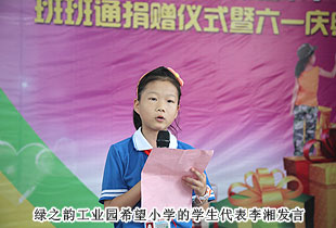 愛是看不見的語言,愛是摸不到的感覺,但愛是人類最美好的情感?,F(xiàn)場,綠之韻工業(yè)園希望小學(xué)黨支部書記羅玉明深情回顧,回顧希望小學(xué)建校前期的因設(shè)施簡陋而日漸艱難的歷程,回顧綠之韻入駐工業(yè)園后積極了解查看學(xué)校情況的誠摯,回顧綠之韻集團捐資建學(xué)后學(xué)校煥然一新的模樣,諸多的淵源讓我們緊密相連,諸多的經(jīng)歷讓我們心手相牽。而綠之韻集團董事常務(wù)副總裁勞嘉在活動現(xiàn)場的致辭更道出了綠之韻人的赤子之心:“我們希望盡一己之力讓愛傳播,播散到每個孩子們心里,奉獻真請誠愛心,盡情展現(xiàn)屬于綠之韻人特有的風(fēng)采,讓關(guān)愛充滿校園,讓溫情的陽光撒向每一個人需要幫助的孩子!”此番言辭以及綠之韻慈善基金的義舉,讓現(xiàn)場的人們深受感染。綠之韻工業(yè)園希望小學(xué)的學(xué)生代表李湘,深情并茂,現(xiàn)場講演,將感恩傾注于童稚而慎重的語言。