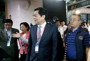 2014年5月15日,亞洲最大、世界前三的礦物化石寶石展——第二屆中國(長沙)國際礦物寶石博覽會(以下簡稱博覽會)在湖南國際會展中心隆重開幕。湖南省工商聯(lián)(總商會)常委、長沙市工商聯(lián)(總商會)副主席、綠之韻集團(tuán)董事長胡國安受邀出席開幕式,并陪同中共湖南省委副書記、湖南省人民政府省長杜家毫,湖南省人大常委會副主任劉蓮玉等領(lǐng)導(dǎo)一行視察展館。