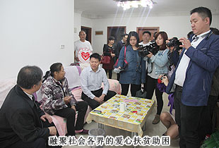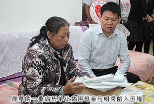 貧困母親馬明秀,患有尿毒癥,丈夫同樣身體抱病,一摞厚厚的病歷單成為這個家庭最刺眼的標簽。桌子上各種各樣的藥罐子,是每月2000多醫(yī)療費用的產物,當失去了經濟來源,生的希望就無情地熄滅了。可是,當迎來慰問隊伍,收到各界的關懷之后,馬明秀說:“我曾經失去過活下去的勇氣,但是社會各界的關心,讓我又擁有了對抗病魔的勇氣,我一定會好好活下去,帶給家人和社會精神上的正能量?!?br/>