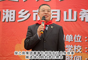綠之韻集團董事長胡國安深情地說:“我是從山村走出來的孩子,我深切地知道孩子們渴望學(xué)習(xí)的心情。我從小就希望能夠憑自己的力量,幫助別人。如今,綠之韻集團不僅承擔著社會責任,更培養(yǎng)了一大批有能力幫貧扶困的經(jīng)銷商愛心志愿者。企業(yè)做大了就是屬于社會,屬于國家的,“關(guān)愛生命,回報社會”是綠之韻的使命,綠之韻湘鄉(xiāng)市月山鎮(zhèn)希望學(xué)校已經(jīng)是綠之韻捐贈的第九所希望小學(xué),捐贈38所綠之韻希望學(xué)校是全體綠之韻人心中的夙愿。我沒有別的期望,就想以實際行動,以自身點點滴滴的實踐,帶動更多的中國優(yōu)秀企業(yè)一起參與承擔社會責任,共同推動社會責任發(fā)展。希望孩子們好好學(xué)習(xí),有一技之長,將來為祖國作出更大的貢獻?!?br/>