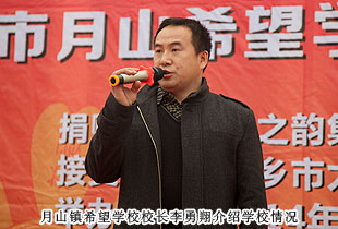 “讓貧困孩子上學(xué),讓留守孩子有愛,讓農(nóng)民工子女找到家的感覺,讓愛在這里延續(xù),讓希望在這里升騰”,這是月山鎮(zhèn)希望學(xué)校校長李勇翔的辦學(xué)目標。在捐贈儀式現(xiàn)場,李校長的講話稿里提到,“近幾年隨著月山鎮(zhèn)外出打工的農(nóng)民日益增多,學(xué)生構(gòu)成也發(fā)生了巨大變化。學(xué)校為了幫助這些常年在外打工的家長解除后顧之憂,積極接收其子女入學(xué)。這些留守的孩子們是如此可愛,看著他們懂事樂觀的樣子,又很心疼。我感謝綠之韻的每一位愛心經(jīng)銷商,幫助學(xué)校建設(shè),關(guān)愛孩子成長。”