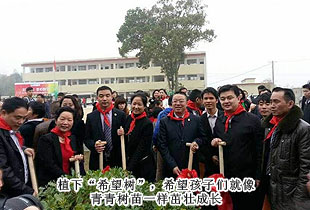 揭牌儀式結(jié)束后,胡國安董事長與綠之韻愛心經(jīng)銷商在李勇翔校長的帶領(lǐng)下一起參觀了月山鎮(zhèn)學(xué)校的教學(xué)環(huán)境,并植下了八棵“希望樹”,希望孩子們就像青青樹苗一樣,充滿生機與朝氣,努力學(xué)習(xí),成為國家的棟梁,將來更好地建設(shè)家鄉(xiāng)。