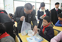 在本次捐贈儀式正式開始之前,還有一個特別溫暖、快樂的互動環(huán)節(jié),60名湘鄉(xiāng)地區(qū)的經(jīng)銷商們,在得知能參與本次愛心活動之后,熱情地準備了書籍、籃球、羽毛球、筆記本、彩畫筆等豐富的文體用品。帶著滿腔的關(guān)愛走進教室,跟孩子們交流互動,贈送禮物?!斑@些物品不算貴重,但卻是孩子們需要的,代表了所有綠之韻愛心志愿者的心愿,希望孩子們知道,有很多人在關(guān)心著他們、牽掛著他們。”參與活動的經(jīng)銷商代表傅建華說。