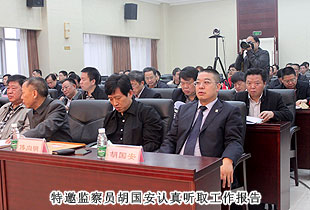 特邀監(jiān)察員胡國(guó)安表示:一定珍惜黨和人民賦予的神圣職責(zé)和使命,不斷加強(qiáng)政治和業(yè)務(wù)知識(shí)學(xué)習(xí),不斷提高履職能力和水平,積極主動(dòng)參與行政監(jiān)察工作,及時(shí)反饋廣大納稅人心聲,促進(jìn)地稅機(jī)關(guān)與黨政部門、社會(huì)各界和納稅人的溝通,為構(gòu)建更加融洽、更加和諧的征納關(guān)系而不懈努力!