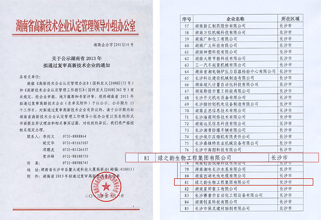 近日,從湖南省科技廳傳來喜訊。根據(jù)《高新技術(shù)企業(yè)認定管理辦法》(國科發(fā)火〔2008〕172號)和《高新技術(shù)企業(yè)認定管理工作指引》(國科發(fā)火〔2008〕362號)有關(guān)規(guī)定,經(jīng)企業(yè)申報、地方推薦和專家評審,綠之韻集團順利通過國家科技部2013年高新技術(shù)企業(yè)復(fù)審,再次榮膺國家科技部“高新技術(shù)企業(yè)”榮譽稱號。