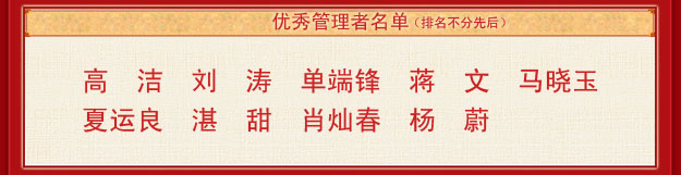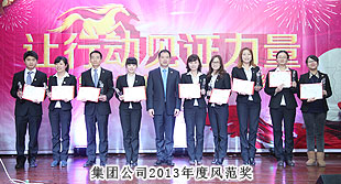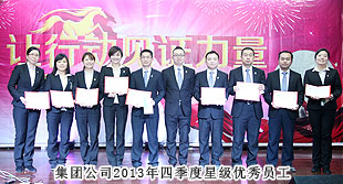 會(huì)議最大亮點(diǎn)當(dāng)屬表彰環(huán)節(jié)。時(shí)間記錄了腳步,榮譽(yù)證明了努力,2013年表彰大會(huì)共設(shè)置“季度優(yōu)秀集體”“年度優(yōu)秀員工”“年度優(yōu)秀基層管理干部”“年度優(yōu)秀中層管理干部”“最佳成長獎(jiǎng)”“最佳指導(dǎo)老師獎(jiǎng)”等多個(gè)獎(jiǎng)項(xiàng)。榮譽(yù)證書和水晶獎(jiǎng)杯記載著榮譽(yù),鐫刻著感動(dòng)。表彰不僅是一份嘉獎(jiǎng),更是一次次回顧,回顧每一次突破與飛躍,為明天的奮斗添加更多的信心和力量!