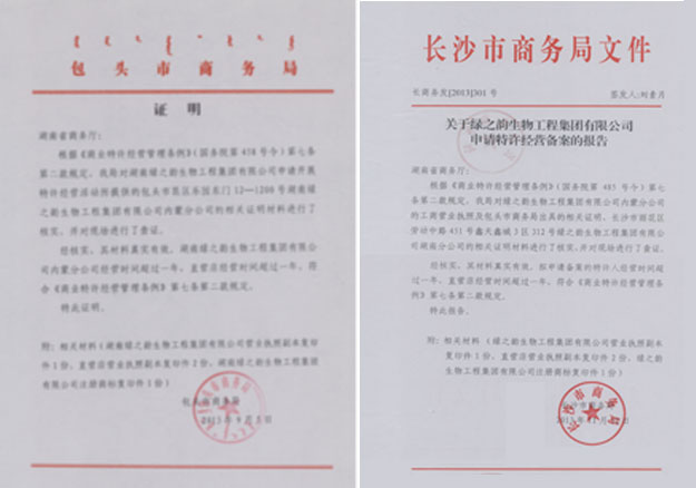 2013年12月26日,綠之韻生物工程集團有限公司(以下簡稱綠之韻集團)正式獲得國家商務(wù)部的企業(yè)特許經(jīng)營備案,備案登記號為:0430100711300045,網(wǎng)站信息查詢: http://txjy.syggs.mofcom.gov.cn/manager/prosecute.do?method=add&id=3527302