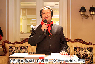 《毛澤東傳奇》新書發(fā)布暨媒體見面會環(huán)節(jié),作者龔一分享了自己的創(chuàng)作之路。他花了十年功夫?qū)懴率澜缡撞啃滦螒B(tài)故事版《毛澤東傳奇》共10券,400余萬字,以科學(xué)準確的歷史觀,生動真實地記錄了毛澤東跌巖起伏、富有傳奇色彩的一生,全景式、立體豐滿地還原了一位開國領(lǐng)袖人生歷程,內(nèi)心世界以及與中國近代歷史、國家命運血肉關(guān)系與巨大的牽引力,這是迄今為止表現(xiàn)毛澤東一生最為全面、最為翔實一部故事版巨著,是中共黨史、領(lǐng)袖人物傳記領(lǐng)域里又一力作。