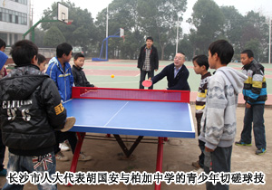 考察期間,長沙市人大代表、綠之韻集團(tuán)董事長在瀏陽柏加初級中學(xué)操場與青少年們零距離交流,切磋乒乓球藝,了解他們心中最真實(shí)的需求。座談會上,胡國安代表按眼中所見,心中所感,暢談了關(guān)注青少年成長及推進(jìn)教育體制改革的若干建議。并表示:希望青少年們志存高遠(yuǎn)、增長知識、錘煉意志,使一個個小小“少年夢”匯聚成強(qiáng)大的“中國夢”。綠之韻團(tuán)支部作為關(guān)注青少年成長的主要平臺,仍將對青少年成長教育高度關(guān)注,充分發(fā)揮團(tuán)思想陣地和組織陣地的職能,切實(shí)關(guān)注青少年的成長,為他們的發(fā)展構(gòu)建良好的社會環(huán)境。