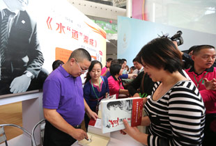 新書簽售展區(qū)前,胡國安董事長親臨簽售,幾十位政界、商界、校友、中國商務(wù)出版社代表蒞臨現(xiàn)場傾力助陣。簽售現(xiàn)場氣氛十分火爆,展區(qū)前很早就排起了長龍,人頭攢動,火爆異常,讀者、粉絲和綠之韻經(jīng)銷商有序排好隊列,索要簽名,爭相一睹“水文化”之集大成者董事長胡國安先生的風(fēng)采,不到1個小時1200多冊《水“道”渠成》搶售一空,許多后來的讀者、粉絲沒有買到新書,展區(qū)工作人員不得不緊急補充書源。