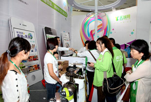 在會展中心一角,別出心裁的紫婓藍(lán)莓酒專展,讓人眼前一亮。