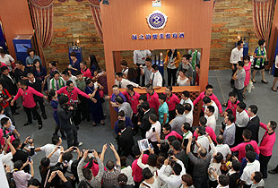 直升飛機、豪華奔馳與寶馬轎車、紫婓藍(lán)莓酒專展、《水道渠成》簽售區(qū)、科技展示中心及五星級酒店沙盤、各類巨幅廣告……在湖南衛(wèi)視國際會展中心一樓,十周年慶典現(xiàn)場,以“中國夢?綠之韻夢”為主題,綠之韻有史以來最隆重、最高端、最大氣的夢想嘉年華布展活動,全方位展示出綠之韻十年優(yōu)質(zhì)產(chǎn)品、卓越品牌、企業(yè)文化、榮譽體系和未來藍(lán)圖的獨特魅力。