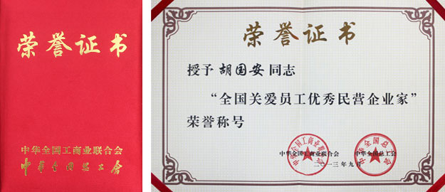 為深入貫徹落實(shí)黨的十八大精神,推動民營企業(yè)加快轉(zhuǎn)變發(fā)展方式,積極履行社會責(zé)任,構(gòu)建和諧勞動關(guān)系, 2013年9月9日,由全國工商聯(lián)、全國總工會主辦的第七屆全國民營企業(yè)“關(guān)愛員工、實(shí)現(xiàn)雙贏”經(jīng)驗(yàn)交流暨表彰會議在北京人民大會堂聯(lián)合召開。中央政治局委員、全國人大常委會副委員長、全國總工會主席李建國,全國政協(xié)副主席、全國工商聯(lián)主席王欽敏。中央統(tǒng)戰(zhàn)部副部長,全國工商聯(lián)黨組書記、常務(wù)副主席全哲洙;全國工商聯(lián)副主席李路、安七一,全國總工會副主席、書記處第一書記陳豪, 全國總工會副主席、書記處書記張鳴起,全國總工會副主席、書記段敦厚等出席了此次活動。在評選表彰活動中,綠之韻集團(tuán)胡國安董事長榮獲 “全國關(guān)愛員工優(yōu)秀民營企業(yè)家”。同時,綠之韻集團(tuán)業(yè)務(wù)服務(wù)部高級經(jīng)理高潔、新聞中心主任蔣文成為 “湖南省最具幸福感企業(yè)員工”代表。