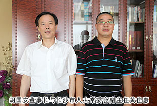 2013年7月30日,長(zhǎng)沙市人大常委會(huì)副主任黃佳惠、長(zhǎng)沙市人大常委會(huì)聯(lián)工委副主任彭金城一行蒞臨綠之韻集團(tuán)考察調(diào)研工作。長(zhǎng)沙市人大代表、綠之韻集團(tuán)董事長(zhǎng)胡國(guó)安,瀏陽(yáng)市人大代表、董事常務(wù)副總裁勞嘉,總裁助理方彥雄全程陪同考察組一行參觀了綠之韻集團(tuán)總部。