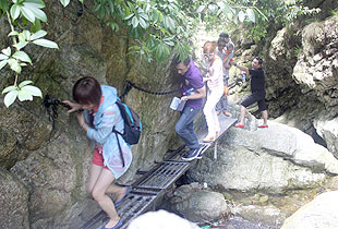 在湖南省安化縣的崇山峻嶺和山澗溪流之間,綿延著一條神秘的茶馬古道。千百年來,無數(shù)的馬幫在這條道路上默默行走,悠遠的馬鈴聲,回蕩在山谷、急流和村寨上空,開辟了一條通往域外的經(jīng)貿(mào)之路,形成了世界上地勢最高、山路最險、距離最遙遠的茶馬文明古道。在關山峽谷層巖疊翠,怪石嶙峋的道路上行走,綠之韻同仁們盡情體驗了一番攀巖探險的刺激和樂趣。正是因為古道的艱險超乎尋常,沿途壯麗的自然景觀也不斷地激發(fā)人潛在的勇氣、力量和忍耐?!榜R幫憑借自己的剛毅、勇敢和智慧,用心血和汗水澆灌了一條通往茶馬古道的生存之路、探險之路和人生之路。茶馬古道上馬蹄印仍歷歷在目,帶著我們遙憶先輩們的經(jīng)貿(mào)故事,值得我們深思和學習!”綠之韻董事常務副總裁勞嘉深深感慨道。