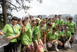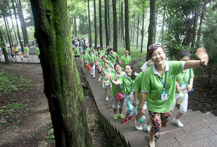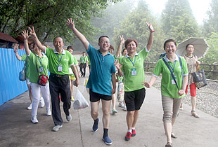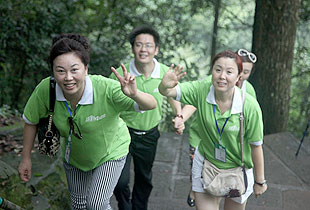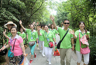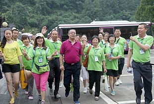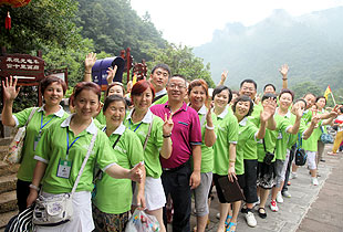 要想游覽十里畫(huà)廊、天子山、袁家界,欣賞張家界舉世聞名的俊山奇峰,乘坐“世界上最高、運(yùn)行速度最快、載重量最大的電梯”——百龍?zhí)焯菔亲詈玫倪x擇。雄、奇、險(xiǎn)、峻是對(duì)眼前綿延起伏的山巒最合適的形容,峻峭之石,如英武將帥;嵯峨之峰,似勇猛壯士。胡國(guó)安董事長(zhǎng)帶領(lǐng)伙伴們翻山越嶺,游覽采藥老人、五指峰、御筆峰、賀龍公園、神龜望天等景點(diǎn),并與伙伴們留影紀(jì)念。側(cè)看天子山,猶如一條連綿起伏的巨龍橫臥在地上,六千多個(gè)臺(tái)階蜿蜒直上。綠之韻伙伴們?cè)诤鷩?guó)安董事長(zhǎng)的引領(lǐng)下,一邊欣賞如畫(huà)的風(fēng)景,一邊嬉笑攀談,全然忘記了爬山的辛苦,一步一個(gè)鏗鏘的步伐,一步一個(gè)堅(jiān)實(shí)的腳印,無(wú)畏艱險(xiǎn)與艱辛,拾級(jí)而上,一路向前。登上山頂?shù)哪且豢蹋锇閭兗娂妵『鷩?guó)安董事長(zhǎng)歡呼雀躍,興奮不已,心中油然而生縱覽群山、一呼百應(yīng)的豪情。“我再也不覺(jué)得爬山是件可怕的事情了。其實(shí),生活中我們會(huì)遇到很多比爬山更困難的事,但是只要你勇敢地邁出第一步,堅(jiān)持到底,就會(huì)克服困難,走出困境?!币晃痪G之韻伙伴說(shuō)道。