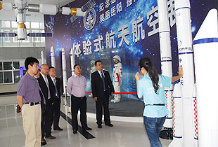 在航空體驗展的參觀中,綠之韻集團(tuán)胡國安董事長一行對我國航天事業(yè)的發(fā)展有了更深刻的了解和感悟。全國首家1:1比例制作,約60米長、9米高的“CZ-2F”火箭模型, 1:1比例制作的民航波音737模型,以及未來空間站模型、神州十號飛船與天宮一號對接模型、北斗組網(wǎng)衛(wèi)星模型、月球車“繞落回”仿真模型和長征系列火箭等靜態(tài)航天模型。全國首創(chuàng)體驗式項目包括了具有超強(qiáng)震動感的體驗版神九返回艙,讓體重頓時變成僅有1/6的月球漫步儀,令人頭暈?zāi)垦5腻e覺訓(xùn)練儀,除此之外,在航天航空科技館內(nèi)還能見到珍貴的太空育種、太空食品、太空搭載物品、內(nèi)部機(jī)密高清立體電影,以及具有懷舊特點的5架戰(zhàn)斗機(jī)。