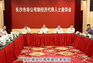 長沙要成就更好更快發(fā)展的偉業(yè),實現(xiàn)“六個走在前列”的目標,必須采取積極有效的措施,推動非公企業(yè)做強做大做優(yōu),促進非公有經(jīng)濟健康快速發(fā)展。2013年6月8日,長沙市非公經(jīng)濟代表人士座談會在湘麓山莊成功舉行。中共長沙市委、市政協(xié)有關(guān)領(lǐng)導同志,中共長沙市委統(tǒng)戰(zhàn)部、市農(nóng)辦、市發(fā)改委、市工信局、市科技局、市人社局、市國土局、市商務局、市工商聯(lián)主要負責同志,綠之韻集團董事長胡國安等非公經(jīng)濟代表人士,“激活民間資本、提振創(chuàng)業(yè)信心”課題調(diào)研組負責人參加了本次會議。